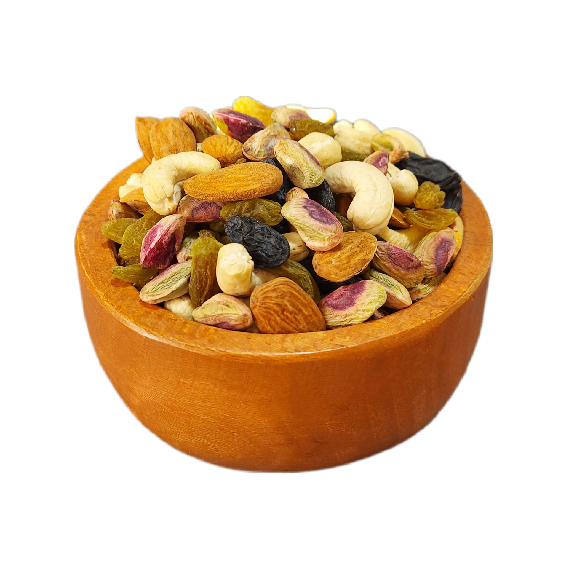 ۸۰ گرم مغز پسته احمد آقایی، ۸۰ گرم بادام هندی، ۵۰ گرم بادام درختی ایرانی، ۵۰ گرم کشمش، ۵۰ گرم مویز